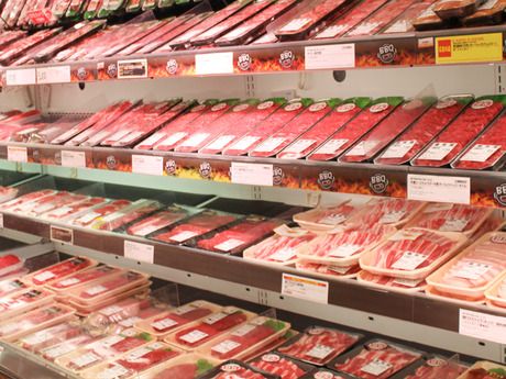 食品スーパーでの精肉加工