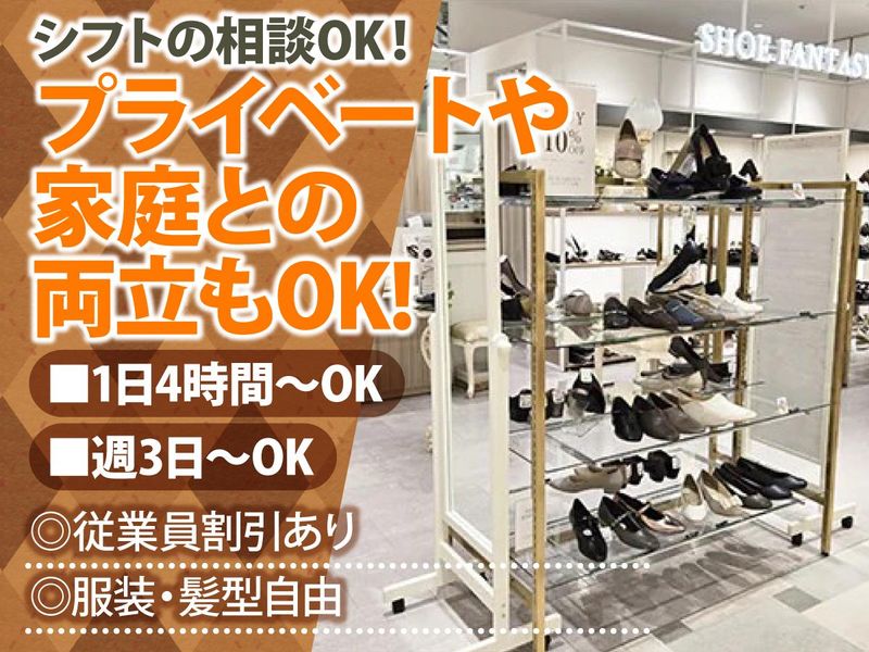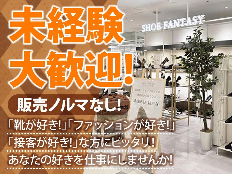 仕事内容 \4月11日、三宮センター街にオープン!/ オープニングスタッフを大募集★ <未経験歓迎!好きを仕事にしませんか!> <特別なスキルは必要ありません!> =================== ◎お客様の接客、商品のご提案など ◎レジ操作 ◎商品発注 ◎店舗のレイアウト作り 慣れるまでは店長やスタッフが しっかりとサポートします。 分からないことがあっても必ず社員がいるのでいつでも聞ける環境◎ 未経験の方も安心してご応募ください! =================== お客様に商品を説明したり、販売するお仕事です! 20~50代の女性のお客様が中心です。 販売ノルマなし!未経験の方も大歓迎です! 「靴が好き」「ファッションが好き」「接客が好き」な方なら大丈夫! 靴の知識は働きながら自然とついてくるので安心して下さい! お客様が運命の1足を選べるよう、お客様のサポートをお願い致します。 お客様との会話を楽しみながら、接客を楽しめる、そういうお仕事です。 大切なのは「お客様に喜んでいただきたい」という気持ち。 まずはできることから始めていきましょう! =================== 【アピールポイント】 ◆ノルマなし◎  ̄ ̄ ̄ ̄ ̄ ̄ ̄ アパレル業界と聞くと、 「販売ノルマが大変そう…」という イメージがある方も多いかもしれません。 お客様に合う一足を見つけていただく為にも 当社では販売ノルマを設けていません。 当店の靴は、こだわりの完全自社製造。 ノルマに追われる接客ではなく、 お客様との会話を楽しみながら、 「ぴったりの一足」を一緒に見つける お手伝いをしていただければ大丈夫です。 ◆好立地&高時給!  ̄ ̄ ̄ ̄ ̄ ̄ ̄ ̄ ̄ 阪急・阪神・JR・地下鉄… 各線からすぐの好立地。 通勤にはとても便利な職場です。 また、周りには色々な飲食店や 商業施設もあるのでランチや、 仕事終わりの買い物などにも便利です。 三宮センター街の店舗になるので、 雨の日でも地下を通って濡れずに出勤可能♪ そして時給は1400円と高時給! 交通費も全額支給いたします◎ ◆従業員割引あり  ̄ ̄ ̄ ̄ ̄ ̄ ̄ ̄ 従業員割引は社員だけでなく、 アルバイト・パートも使えます◎ 神戸市の本社工場で1足ずつ 丁寧につくった日本製の特別な靴を、 従業員割引も活用して お得に購入できるのも魅力の1つです◎ =================== 【シューファンタジーについて】 パンプス・ブーツ・サンダルなど季節に合った靴を、 OLさんやミセスの方を中心に販売しています。 接客・販売未経験の方、ブランクがある方も大歓迎! 人と話す事が好きな方、オシャレをするのが好きな方もぜひご応募ください。 お勧めした靴がお客様にご満足していただけた時には、 やりがいを感じていただけるはずです。 接客や販売に興味がある方のご応募を心よりお待ちしております!