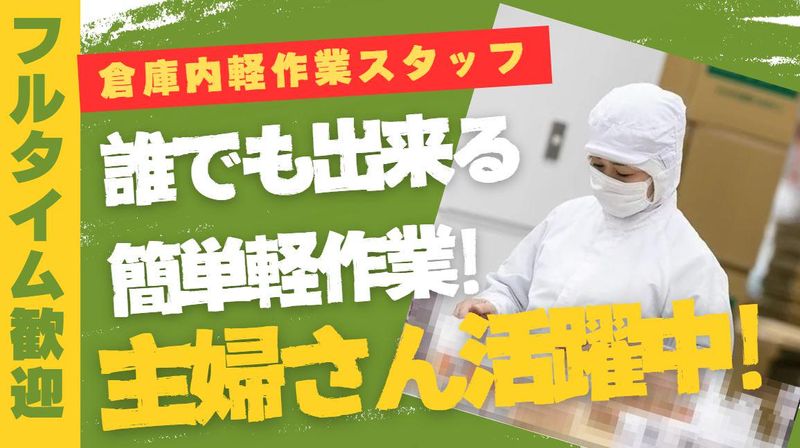 仕事内容 ★\ フルタイムで安定して働ける軽作業 /★ 家事・育児と両立しながら しっかり収入を得たい主婦(夫)さん歓迎! ╭━━━━━━━━━━━━╮ 当社のおすすめPOINT ╰━━━━━━v━━━━━╯ ✅ 未経験スタート大歓迎 ✅ フルタイム勤務で安定収入 ✅ 主婦スタッフ多数活躍中 ✅ 家庭と両立しやすい職場環境 ⋆⸜ シンプル軽作業のお仕事 ⸝⋆ 経験・資格は一切必要ありません!  ̄ ̄ ̄ ̄ ̄ ̄ ̄ ̄ ̄ ̄ ̄ ̄ ̄ ̄ ̄ ̄ ̄ ̄ 【仕事内容】 化粧品の製造に関わる軽作業をお願いします。 ・化粧品の充填作業 ・化粧品の包装作業 ・シール貼り ・検品作業 など 作業はどれもシンプルなので、 未経験の方でもすぐに覚えられます◎ 最初は先輩スタッフが丁寧に教えるので 工場や軽作業が初めての方も 安心してスタートできます。 ⋆⸜ 主婦さんが多数活躍中 ⸝⋆ 家庭と両立しながらフルタイム勤務!  ̄V ̄ ̄ ̄ ̄ ̄ ̄ ̄ ̄ ̄ ̄ ̄ ̄ ̄ ̄ ̄ ̄ ̄ 当社では、フルタイムで働く主婦さんが 多数活躍しています。 「子育てが落ち着いたのでしっかり働きたい」 「家計のために安定して収入を得たい」 「久しぶりの仕事復帰で不安…」 そんな方も安心して始められる環境です。 同年代のスタッフも多く、 休憩時間には家庭や子育ての話で 盛り上がることもありますよ♪ ╭━━━━━━━━━━━━╮ 働きやすい会社をみんなで ╰━━━━━━v━━━━━╯ 「すべての人が働きやすい会社」を目指す当社。 経験や年齢に関係なく、安心して 働ける環境づくりを大切にしています。 さまざまな経験を持つ人が集まることで、 より良い職場環境が生まれていきます。 気づいたことや意見があれば 遠慮なく相談してください。 一緒に、もっと働きやすい職場を 作っていきましょう!