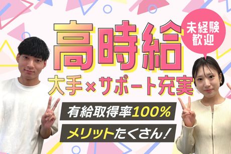 \ワイワイ楽しい雰囲気で接客のオシゴト♪/若手世代が多数在籍◎みんなで協力しながらお客様をサポート★未経験から大手企業に就職するチャンス!正社員登用制度もあり◎飲食など接客バイトの経験も活かせます♪
