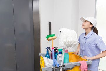 オフィスビルでの清掃スタッフ