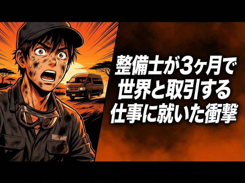 求めている人材 あなたに必要なのは、たった2つだけだ。 1 車が好きだという気持ち (知識は不要。好きなら十分) 2 できないことをできるようになりたいという成長意欲 英語力? 不要。 Google翻訳とDeepLがある。 入社時に英語ができた社員はほとんどいない。 実務を通じて自然に身につく。 ECサイトの知識? 不要。 管理画面は直感的で使いやすい。 パソコンの基本操作ができれば問題ない。 車の査定スキル? 不要。 元整備士の出田社長が3ヶ月で叩き込む。 先輩が毎日隣で教える。 貿易の知識? 不要。 B/L、CIF、FOBなんて言葉を知らなくていい。 働きながら覚えていける。 必須条件はこれだけ。 普通自動車運転免許 (オークション会場や港へ車で移動するため) パソコンの基本操作 (Excel、Word、メール) こんな方は特に歓迎。 整備士経験がある方 (年数・級は問わない。あなたの車を見る目は、世界で通用する武器になる) 人の役に立つ仕事がしたい方 (あなたが査定した一台が、ケニアの家族を支え、ジャマイカの夢を叶える) 今の仕事に情熱を感じられない方 (その痛みは、ここで終わりにできる) 土日休みで家族との時間を取り戻したい方 新しいスキルを身につけて市場価値を上げたい方 学歴不問。経験不問。年齢不問。 問われるのは、成長したいという意志だけだ。