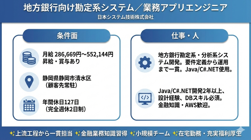 ✅地方銀行向け基幹システム開発 ✅要件定義から運用まで一貫対応 ✅Java・C#.NET経験を活かせる環境