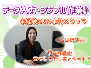 仕事内容 \複合機(コピー機)に関わるデータ入力中心のお仕事/ オフィス内でのデータ入力を中心とした、シンプルで始めやすいお仕事です。 未経験の方でも、丁寧にお教えしますのでご安心ください。 ◆ データ入力業務◆ ●複合機(コピー機)のカウンター検針(コピー枚数などの情報)を確認し、請求に関するデータ入力 ●顧客データベースへの登録作業や、登録依頼の受付サポートを行います 決まったフォーマットへの入力が中心なので、難しい操作はありません ◆ 電話対応業務(※今後お願いする可能性あり)◆ ●社内スタッフやお客様からの電話の取次ぎ対応(受電) ●請求に必要な内容についての確認連絡(発信) いずれもマニュアルがあり、いきなりお任せすることはありません [こんな人が活躍] ・周囲と連携しながら、丁寧に業務を進められる方 ・コツコツと正確な作業が得意な方 ・安定した環境で長く働きたい方 \20~40代の男女スタッフが活躍中/ 時短勤務で働く地元の主婦さん フルタイム勤務で生活の基盤として働くフリーターさん お仕事、プライベート、どちらも充実させたい方が多数活躍しています。