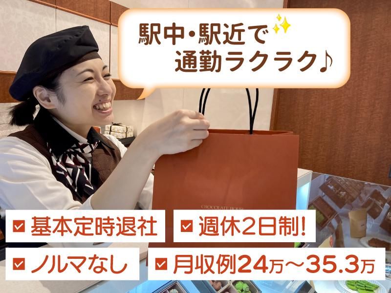 仕事内容 葉っぱの形で有名なチョコレートブランド 《モンロワール》 ブランドのファンを増やしていただける ショコラアテンダントを積極募集いたします! ≫≫≫モンロワールで働く魅力!!≪≪≪ ⭐勤続年数に応じた連続休暇 ◎有給消化率98% ⭐最大年3回の5連休!趣味や旅行を満喫して リフレッシュできる! ⭐残業は繁忙期でも月10h以内! プライベートも充実! ⭐20代、30代、40代の女性活躍中! ⭐産休・育休取得実績あり ⭐年2~3回賞与で安定収入! 業績も安定、新規オープンも 継続しております。 ■具体的な仕事内容■ 【接客販売業務】 〇チョコレートの接客販売、レジ対応 〇商品陳列、商品補充、商品管理、 品出し、清掃 〇購入頂いた商品のラッピング 〇ディスプレイの企画 【店舗運営業務】 ※店長へキャリアアップ後 〇イベントの企画 〇売上管理 〇教育マネジメント 〇売場作り ❇-❇-❇-❇-❇-❇-❇-❇-❇-❇-❇-❇-❇ お客様から愛されるブランド作りを スタッフ一丸となり、笑顔があふれる ショップ作りを目指しています! ❇-❇-❇-❇-❇-❇-❇-❇-❇-❇-❇-❇-❇ 『 〇〇さんに会いたかったから来たのよ』 『 買うつもりがなかったけれど、 美味しそうだからいただくわ』など お客様との会話を楽しめる方には とてもオススメです。 ■入社後の流れ■ 店舗にてOJTを行っております。 先輩スタッフ、店長がしっかりフォローするので販売未経験の方も安心してお客様対応を学べます! ■早期の店長・マネージャーへのキャリアアップも可能■ 販売スタッフから、店長やマネージャー職など 運営スタッフへのキャリアアップ実績あり。 ✏昨年、店長2名がマネージャー職へ ステップアップ! 店長はマネージャーの定期面談などフォロー体制も整っています。 会社としてチャレンジは大歓迎!しっかり応えますので 安心してキャリアアップを目指せます。 ■周辺情報■ 近隣には、玉川高島屋S・Cなどの商業施設があり、 駅チカお仕事の前後のお買い物なども便利です! *~*~*よくあるご質問*~*~* Q.1店舗毎のスタッフの人数は? A.店舗毎に異なりますが、はじめから一人でお任せすることはないのでご安心ください。 ※店舗スタッフのうち約85%が正社員です。 Q.転勤はありますか? A.キャリアアップや適性、お住まいの近くに新店がオープンした際などに 異動を打診することがあります。引っ越しを伴う異動はありません。 詳細は面接or事前にTELもOKお気軽に お問合せください♪