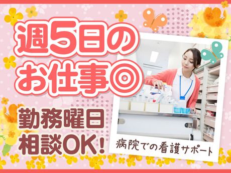 仕事内容 【日勤帯看護助手】資格も経験も必要ナシ◎「私にもできそう!」と思った今が始めるチャンスです♪ 長崎市内の病院で日勤スタッフを募集中! 病棟内にて看護師さんのお手伝いや 患者様の身の回りのサポート業務をお任せ。 【 お仕事内容 】 ■病院での入退院準備 ■シーツ交換 ■清掃・ゴミ回収 ■食事の配膳・下膳 ■消耗品の補充 ■患者様の身の回りのお世話 などの軽作業中心の看護助手業務 医療の資格・経験はなくてもOK! 基本的なことから一つずつ教えていきます◎ 9割以上の方が未経験からのスタートです♪ 【 日勤帯で時間の選択OK 】 3つのシフトから勤務時間を選べます! 早起き派も、家事を済ませてから働きたい方も、 自分の生活スタイルに合った働き方が可能◎ 交替制ではないので体調管理もしやすいです 【働くスタッフの声】 <50代主婦さん> 結婚してからは仕事経験がなかったのですが、 老後のために少しお金を貯めたくて 働き始めることにしました。 医療業界は未経験だったので 最初はすごく不安でしたが、 シーツ交換とか食事の準備とか 家事の延長みたいな感覚でできる お仕事も多く、無理なく続けられてます♪ 【無資格・未経験OK】年齢も一切不問!50代・60代・中高年・シニア世代もはつらつとお仕事しています なにかお仕事を始めたいけど、 経験が少なくて悩んでいる方いませんか? 「社会人経験がほとんどない・・・」 「結婚後、何十年も働いていなかった・・・」 「ずっと家事手伝いをしていて・・・」 「パートの経験しかない・・・」 だけど、 「楽に稼ぎたい!」 「覚えることが少ない方がいい!」 「年齢気にせず働きたい!」 と理想は高くなりがち・・・ 弊社では、そんな初めての方でもできる 未経験OKの病院のお仕事をご紹介します! 医療資格がなくても 医療用語を知らなくても、 『看護助手』は始められるんです♪ \女性スタッフが多数活躍中/ 家庭と両立しながら働く方がほとんど! 50代・60代から始めた未経験の方も活躍中です! \志望動機はなんでもOK!/ ・自分のライフスタイルに合わせて働きたい ・職場が家から近いところが良い ・子育てがひと段落したので働きたい ・ブランクがあるけどしっかり稼ぎたい ・長期で働きたい ・健康の為に身体を動かしたい ・家計の足しに働きたい ・趣味のお金を稼ぎたい ・社会とのつながりを持ちたい …など 皆さんお気軽にご応募ください♪ 【専属コーディネーターがサポート】就業前からお仕事スタート後もしっかり支えます♪ \困った事があればスグ相談!/ お1人につき1名のコーディネーターがつき お仕事探しから働き始めた後までフォローします◎ 「未経験でもできる仕事ありますか?」 「もう少し収入を増やしたい」 「土日祝休みの仕事に転職したい」 などお仕事のことや働き方のことなど 困った事や不安な事があれば いつでもなんでもご相談ください! \研修制度が充実しているから安心!/ 入職後には先輩スタッフがついて イチから丁寧に教えていきますので 安心して始められます。 当社では、働きながら ヘルパー2級、1級、介護福祉士の 資格取得ができる支援制度もあります。 \勤務開始日の相談OK!/ 「スグ働きたい」「来月から」 など、勤務開始日はあなたのタイミングでOK! 在職中の方もぜひご応募ください! 現地面接やオンライン面接も可能です◎ <NG_N>