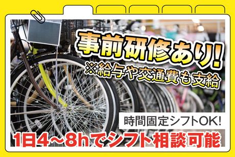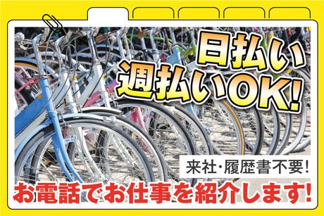 仕事内容 ■子供用からスポーツ用まで種類様々♪サイクルショップでの接客販売 自転車販売店でのお仕事です♪ 接客経験や自転車に関する知識がなくても大丈夫◎ 勤務開始前に研修があるため、 お仕事に関することはイチから学べます! 安心してお仕事を始められますよ! <お仕事内容> ・お客様お出迎えの挨拶 ・購入希望のお客様へのニーズヒアリング ・商品のご提案(社員さんに引き継いでもOK) ・車体お渡し時のご説明 ・梱包解き、お客様に渡す書類の準備、自転車の陳列、空気入れ ・その他店舗運営に伴う付帯作業 ※レジ業務なし ■未経験OKの短期!幅広い年代の男女スタッフが活躍中! 「次の仕事までの繋ぎに」 「短期でサクッとお小遣い稼ぎ」 「お仕事復帰としてまずは短期で働きたい」 「自転車が好き」 「人と話すのが好き」etc… どんな動機でも大歓迎♪ 研修を受けてから勤務スタートなので、 接客・販売が初めてという方もご安心ください◎ 高時給だから短期でも効率よく稼げます! ■柔軟シフト!週3日~OK◎短時間でもフルタイムでも歓迎! あなたの希望に合わせて勤務時間を決定! まずはご相談ください♪ 「土日祝メインで働きたい」 「家事の合間に時短で働きたい」 「週3日でWワークとして働きたい」 「春休みの間だけ働きたい」 など、様々なライフスタイルに対応いたします! もちろん、がっつりフルタイム勤務も大歓迎◎ ■来社&履歴書不要!電話でお仕事のご紹介が可能です。 今回募集しているお仕事に関して もっと詳しく説明してほしいと思われた方には、お電話でしっかり説明します。 来社&履歴書不要でお仕事のご案内が可能なので 仕事が休みの日や仕事終わりなど、 あなたの都合のよいタイミングで連絡いただければ希望のお仕事を案内しますので まずはご応募ください。