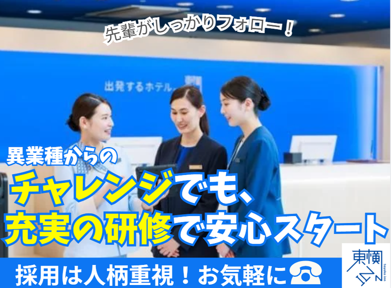 仕事内容 これまでの接客経験、 ムリせず続けられる職場です。 「人と接する仕事は好きだけど、 働き方はそろそろ見直したい」 そんな方にピッタリの環境です。 ୨୧┈┈┈┈ ・✦✦・┈┈┈┈┈୨୧ ▼面倒な登録不要で応募可能♬▼ ┏━━【お気軽に♬* 】━━┓ ┃ お電話でのご応募も歓迎*┃ ┃ 【☎】028-440-1045 ┃ ┗━━┳┳━━━━┳┳━━┛ ┗┛ ┗┛ ୨୧┈┈┈┈ ・✦✦・┈┈┈┈┈୨୧ ━━━━━━━━━━━━━━━━ お任せするお仕事 ━━━━━━━━━━━━━━━━ 難しい作業はありません。 ひとつずつ覚えていけば大丈夫です。 ・チェックイン、チェックアウト対応 ・予約の受付(電話・ネット) ・お問い合わせ対応 ・周辺のご案内 ・簡単な入力作業 ・海外のお客様対応 ※決まった言い回しが中心です 困ったときは、 必ず誰かが近くにいます。 ━━━━━━━━━━━━━━━━ フロントの仕事って、実は… ━━━━━━━━━━━━━━━━ 東横INNのフロントは、 カウンターに立って受付をするだけ、 という仕事ではありません。 お客様の様子を見て声をかけたり、 「どこに行かれるんですか?」と 一言添えてご案内したり。 これまで大切にしてきた ・相手の立場で考えること ・落ち着いた対応 ・忙しいときでも感じのいい受け答え そういった接客の基本が、 そのまま活きる仕事です! ━━━━━━━━━━━━━━━━ 「これ、私かも」と思った方へ ━━━━━━━━━━━━━━━━ ・ホテルや旅館でフロントに 立っていたことがある ・飲食店やアパレルなど、 接客の仕事をしてきた ・営業や受付など、 人と話す仕事の経験がある ・流れ作業より、 相手を見て対応する接客が好き ・長く続けられる職場を探している 「これ、ちょっと自分かも」 と思った方、ぜひ読み進めてください。 ━━━━━━━━━━━━━━━━━━ 足利駅すぐ。落ち着いた立地です ━━━━━━━━━━━━━━━━━━ 勤務地は、足利駅北口から徒歩1分。 出張の方や観光のお客様が多く、 バタバタしすぎない、落ち着いた雰囲気♪ 地域に根づいた接客ができます。 ━━━━━━━━━━━━━━━━ 毎日のリズム、こんな感じです ━━━━━━━━━━━━━━━━ 勤務は 2日働いて、2.5日お休み このサイクルが基本です。 しっかり休めるので、 「夜勤が続いてしんどい…」 という働き方にはなりません。 有給も取りやすく、 「休みにくい雰囲気」もありません。