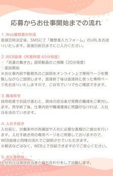 選考プロセス ▼WEB面接 または 来社面接 ▼選考(最短2日~1週間程度) ▼選考結果のご連絡 ▼就業開始 ■エントリーご希望の方は必ずお読みください■ 当社では電話連絡優先で面談日程の調整を行っております。 営業時間内(平日9:00~18:00)にエントリーいただいた求職者様につきましては、オペレーターよりご登録のお電話番号へ5分以内にご連絡致します。 営業時間外のエントリーにつきましては翌営業日の午前中にご連絡いたしますので今しばらくお待ちください。 「当社代表電話番号:011-711-9090」 こちらの電話番号よりご連絡させていただきます。 電話不通の方についてはメールをお送りしますので、ご返信をお願いいたします。 【問合せ先について】 問合せ先:0120-881-314 応募方法 [WEBからエントリー] 24時間受付中☆1分で応募完了 [お電話でエントリー] 応募:0120-881-314 受付時間は平日9時~18時 ※弊社の就業規定による定年は65歳となります