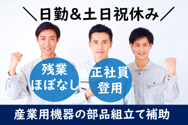 仕事内容 【未経験OK!】精密部品の組み立て\人気の日勤&土日祝休み/正社員登用あり残業ほぼなし!長期休暇もあります♪ <仕事内容> 加工された部品を組み立てる部署でのサポート業務になります。 *指示書を見て棚から部品のピッキング *組み立て前の部品にグリスを塗布 *加工時に付着したオイルの洗浄作業 または *完成品に正しい部品が取り付けられているかや正しく動くかの動作チェック *注文されたオプション品の取付け 慣れてきたら組み立ても簡単なところからお願いする可能性もあります。 ライン作業となります。 立ち作業でのお仕事です。 グループ作業です。 《環境》 女性が多い職場です。 冷暖房完備です。 ロッカー有り|休憩室完備 アピールポイント <仕事内容> 加工された部品を組み立てる部署でのサポート業務になります。 *指示書を見て棚から部品のピッキング *組み立て前の部品にグリスを塗布 *加工時に付着したオイルの洗浄作業 または *完成品に正しい部品が取り付けられているかや正しく動くかの動作チェック *注文されたオプション品の取付け 慣れてきたら組み立ても簡単なところからお願いする可能性もあります。 ライン作業となります。 立ち作業でのお仕事です。 グループ作業です。 《環境》 女性が多い職場です。 冷暖房完備です。 ロッカー有り|休憩室完備 \充実した福利厚生/ ◎社会保険・雇用保険完備 ◎有給休暇有(6ヶ月経過後、10日付与)※規定あり ◎残業手当 ◎交通費支給(規定内) ◎確定拠出年金制度 ◎週払い制度(週3回対応) ◎お友達推薦制度あり(規定有り) ※1名につき3万円~10万円臨時給与として支給 ◎職場見学あり ◎車(マイカー)・バイク通勤可(無料駐車場あり) ◎制服貸与 ◎冷暖房完備 ◎社員食堂あり ◎ロッカー・休憩室利用可 ◎正社員登用制度あり ◎福利厚生プログラム (宿泊、グルメ、ショッピングなど大幅割引が受けられる10万アイテムのメニューがあります。)
