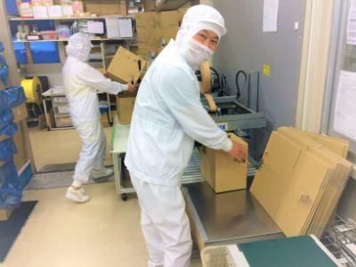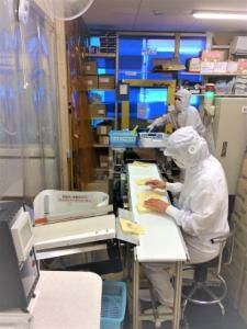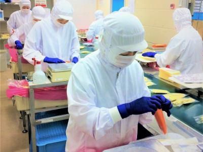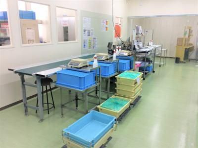 職場環境 【感染症対策も万全の環境】食品を扱うので清潔なのはもちろん、マスク着用、消毒の徹底、こまめな換気等、安心して働けます!空調は1年中25℃~27℃前後の設定なので快適!FSSC資格を保持しているので安定した受注があります!
