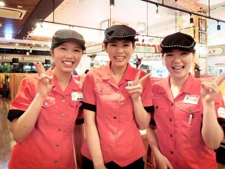 仕事内容 お客様の笑顔が間近で見られるお仕事です! 机のセットやワゴンでの配膳など、 ホール業務をお願いします。 お客様の前でソースをかけたり、 ハンバーグをきったり、 ただ配膳するだけではないのがブロンコビリー。 記念日に利用されるお客様も多く、 誕生日にはバースデーソングと共にケーキをプレゼント! ぜひ一緒にお店を盛り上げてください。 最初は慣れない仕事に緊張するかもしれませんが 先輩が丁寧に教えるので安心してくださいね。 未経験スタート・バイトデビュー応援◎ 一緒にお客様を笑顔にするお仕事をしませんか☆ *=*=*=*=*=*=*=*=*=* 既存店では10代~50代の幅広い年代が活躍中! 「初バイトだったけど、みんなが知ってるお店だから安心だった」という高校生や、「バイトでの経験が就職活動に役立った」という大学生、「最初は短時間パートで始めたけど、子育てが落ち着いたから長時間に変更した」という主婦さん、レギュラーバイトとして活躍するフリーターまで、本当に様々なメンバーが活躍しています。 この職場を気に入って、長く続けてくれているスタッフも多数! ☆3月下旬にOPEN!できたばかりのキレイな店舗☆ 未経験の学生さん大歓迎! *自由シフトで働ける! *好評の食事補助アリ☆ *誕生日にはプレゼントも◎ 働くスタッフへの待遇が充実◎ アルバイト・パートのみなさんにも嬉しい♪ ブロンコビリーならではの待遇が充実しています! ◆ステーキ・ハンバーグなどすべてのメニューが60%offで食べられる! ◆家族や友達とも使える社員割引あり!なんど20%off! ◆誕生日月や年末には豪華なプレゼントも…! 給与の他にも嬉しい特典がたくさんあります! ステーキハウスブロンコビリーのスタッフ募集! ブロンコビリーは1978年に創業したステーキ・ハンバーグ専門店です。 ボリューム満点のステーキや、 俵型の炭焼きハンバーグなどが 人気のレストラン☆ 大かまどで炊くご飯はもちろん、 新鮮野菜を使ったサラダバーなども人気の一つです。 ご家族連れから学生さん、お一人様まで、幅広いお客様にご利用いただいております。