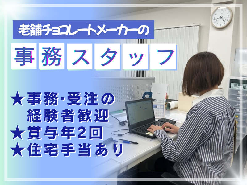 仕事内容 ✨新着求人✨ 老舗メーカーを支える オフィスワークの正社員 ◇━━━━━━━━━━━━━━━ 昭和35年、当時高価なチョコレートを 多くの人に届けるため、日本で初めて チョコレート×ピーナッツを混ぜ合わせた 「ピーチョコ」を販売し、大ヒット! 『大一製菓』での事務スタッフ募集! ━━━━━━━━━━━━━━━◇ \✨ Point ✨/ ⭐事務経験者大歓迎! ⭐業界知識や経験あれば尚可 ⭐気になった方はWEB応募orお電話を! TEL:0467-82-7162 受付/平日10:00~17:00 ※応募以外の電話はお断りしています ✦・┈┈┈┈┈ ・✦✦・┈┈┈┈┈ ・✦ 【具体的なお仕事は】 専用システムによる ■受注・出荷登録 ■webからの受注データ変換 ■在庫移動処理 ■在庫管理 ■配車手配 上記に付随する ■電話・メール対応 ■請求書発行 ■金額差異確認 など、 専用システムによる入金処理等を お願いします。 まずはできることから始めればOK! イチから丁寧に指導します! 【こんな方歓迎】 ✨今までの事務経験を活かしたい! ✨安定した会社で働きたい! 採用は人柄重視で行っています。 周りと明るくコミュニケーションとれる方や 積極的に仕事に取り組む方、 異業種からスキルアップしたい方、 新しいことに挑戦したい方は大歓迎! ✦・┈┈┈┈┈ ・✦✦・┈┈┈┈┈ ・✦ 【事業内容】 チョコレート製造販売、ナッツ販売 創業当時、高価だったチョコレートを 多くの人に手軽に食べてもらえる様、 日本で初めてチョコレートに ピーナッツを混ぜ合わせた 「ピーチョコ」をつくり販売。 現在も生地製造から包装まで行い、 全国に商品をご提供しています。