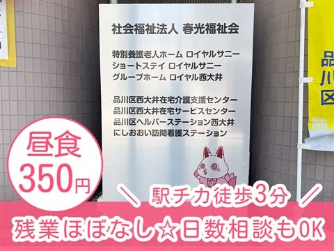 残業ほぼなし☆日数相談もOK★資格不問♪処遇改善手当支給◆駅チカ徒歩3分◇昼食は350円♪≪積極採用中≫【品川区・西大井駅・デイサービス・介護職・日勤パート】