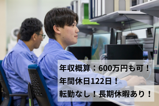 ■アピールメッセージ ・日勤のみ!交替勤務なし! ・転勤なし!腰を据えて長く働けます! ・半日有給休暇、時間単位有給休暇あり! ・賞与年2回あり(平均110万円) \働きやすさバッチリ!/ 年間休日122日、原則土日祝休み! 夏季、冬季、GWの長期休暇あり! 工事対応等で休日出勤することもありますが、振替休日を取得しています。 残業は平均20時間/月程度で、趣味や家族との時間などプライベートを大切にしたい人にぴったりの環境です。