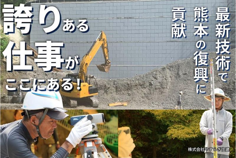 仕事内容 ✨電話応募もOKです!☞096-282-2629 ✨20代~70代の幅広い年齢が活躍中♪ ✨15種類以上の資格取得をサポート! ★★★【注目ポイント】★★★ ✅土日休み◎週休2日制 ✅平均月収25万円~! ※勤務日数による。 ✅未経験歓迎! ✅日払いOK・週払いOK ✅残業ほぼ無し ✅実働7時間30分 ✅休憩はたっぷり1日90分! ✅定年制廃止!! ✅出張無し! ✅転勤なし♪ ✅社内レクレーションも充実♪(自由参加)※BBQや旅行など楽しいイベント盛りだくさん! 当社の一番の自慢は、社員同士の距離が近いところです! 空き時間など、みんなで何気ない雑談でいつも盛り上がっています♪ そんな関係だからこそ、分からないことも遠慮なくすぐ聞ける環境です! ✼┈┈┈┈┈┈┈┈┈┈┈┈┈┈┈┈┈┈✼ ★★★【お仕事内容!】★★★ ✨何もない所に道路や橋をつくるお仕事♪ ✨みんなの暮らす街をつくる! 上益城エリアを中心に土木工事(主に公共工事)をお任せ! ◎一般道 ◎高速道 ◎橋梁 ◎河川護岸 ◎電線共同溝 など ⭐未経験でも安心⭐ 先輩に教えてもらいながら仕事を覚えていただきます! ステップに合わせて、仕事をお伝えするので自分のペースで成長できます♪ ほとんどが未経験からのスタートなので、心配せずに飛び込んできてください! ⭐資格も取れる⭐ 必要な資格の取得は会社が負担します♪ 重機の資格など幅広い資格が取れます♪ 取れる資格の種類は15種類以上! あなたにとって必ずプラスになること 間違いなし◎ また、将来的に施工管理を目指し たい方も全力で応援します! ✼┈┈┈┈┈┈┈┈┈┈┈┈┈┈┈┈┈┈✼