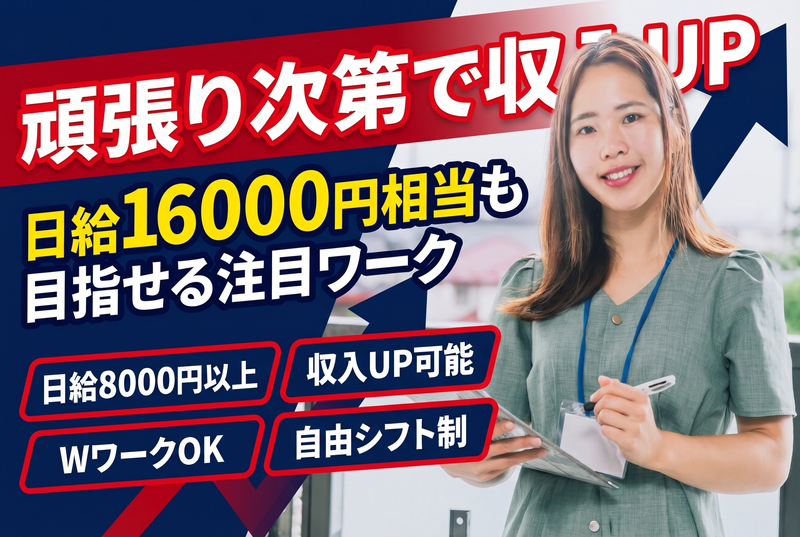 仕事内容 【この求人のポイント】 ✅働く日・休みは基本自由 ✅1日5時間程度で日給8,000円以上も可能 ✅頑張り次第で日給16,000円相当も目指せる ✅営業ノルマなし ✅副業・Wワークにもおすすめ 【仕事内容】 新聞の無料お試し版(サンプル)のご案内を行うお仕事です。 契約を取る営業ではなく、 「無料で試してみませんか?」とご紹介するシンプルなお仕事。 具体的には ・指定エリアのお宅を訪問 ・無料サンプルのお渡し ・お試し参加希望者の受付 マニュアルもあるため未経験でも始めやすい環境です。 【報酬イメージ】 平均10件程度で日給8,000円相当! 20件前後で 日給16,000円相当も可能!