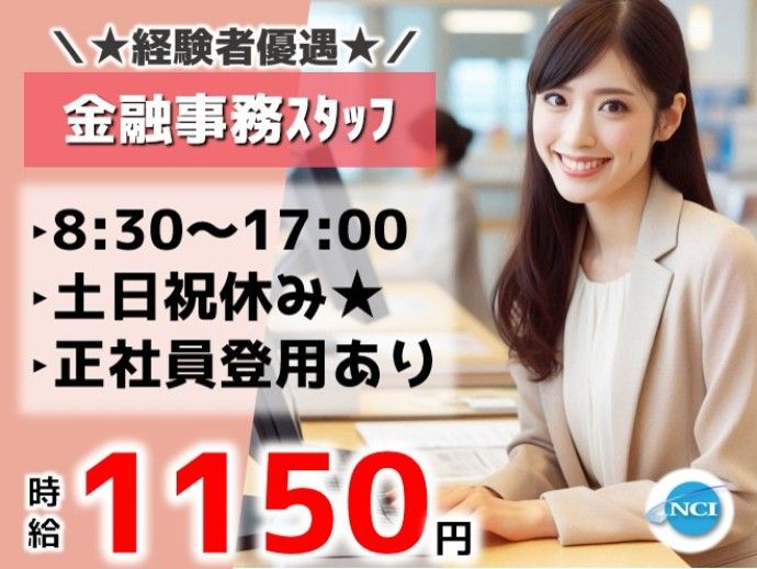 【正社員登用あり◎】8時半~17時/土日祝休み★金融経験者優遇♪30代40代活躍中!