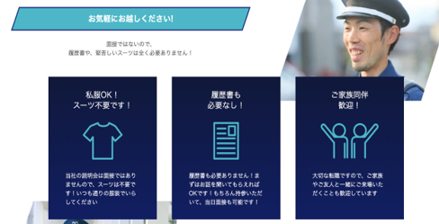 求めている人材 <必須> ・普通自動車免許(AT可)を持っている方 <歓迎> ・経験不問 / 年齢不問 ・学歴不問(中卒・高卒OK) ・ブランクある方・フリーター ・ハローワークでお仕事を探されている方 ・シルバー世代や女性スタッフも活躍中 <以下の資格や経験をお持ちの方は優遇> ・交通誘導警備業務2級保持者 ・雑踏警備員、建設現場交通誘導員、 交通誘導員、イベント警備員、 催事警備員、会場警備員 年齢の条件と理由:あり(例外事由1号・65歳未満(定年のため))