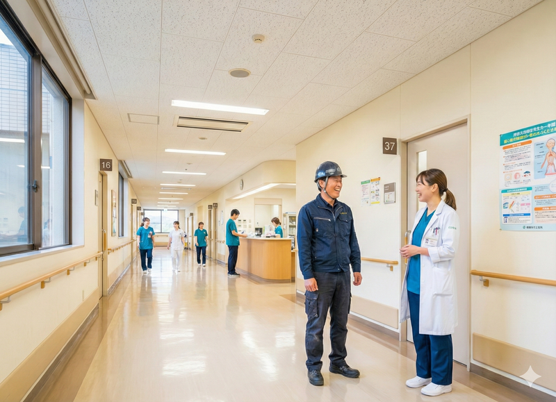 病院内巡回点検と簡単営繕(PC操作少し・80代も現役の現場)
