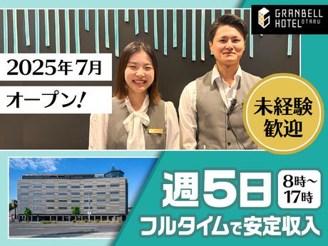 仕事内容 デザイナーズホテルSTAFF 【雇用形態】アルバイト・パート 【勤務時間】8:00~17:00 週2日~OK/フルタイム歓迎 【勤務地】小樽グランベルホテル (北海道小樽市堺町1-1) 【給与】¥1,120 ~ 【応募条件】未経験歓迎! ★シフト調整は柔軟に対応! ★未経験歓迎!WワークOK! ★2025年7月オープンのデザイナーズホテル! *★*―――――――――――――*★* 2025年7月18日 OPEN オープニングスタッフ大募集 *★*―――――――――――――*★* 「小樽グランベルホテル」は 全159室の都市型ホテルで、 ノスタルジックな照明とアートが、 小樽ならではの滞在を演出します♪ 旅の疲れを癒すのは、 石狩湾を一望する展望露天風呂。 最上階から夜景を望む、ルーフトップBAR。 お客様だけではなく、働くスタッフも ワクワクできるような空間を、 一緒につくっていきましょう。 ー ▼ホテルの詳細はコチラ♪ https://www.granbellhotel.jp/otaru/ ▼当社の詳細はコチラ♪ https://granbellhotel.com/ ー デザイナーズホテル×フロント日勤staff <具体的なお仕事内容> ●チェックイン、チェックアウト受付 ●予約などのお問い合わせ対応 ●お客様のご案内 ●簡単な事務処理 ●館内の点検業務 など \未経験・バイトデビュー・ブランク歓迎/ 接客が初めて、ホテルでのお仕事が初めて という方もご安心ください! 社員さんがしっかりサポートします◎ 将来、ホテル業界・観光業界に就職したい方や ホテルのお仕事に興味がある方にもお勧めです! \接客・サービス・マナーが身につく/ 社会人未経験・第二新卒も歓迎♪ プライベートでも役に立つ、マナー、立ち振る舞い、正しい言葉遣いが身につきます◎ 就職活動や、将来にも役に立つスキルです! \語学も活かせる/ 土地柄、観光で来られるお客様や海外からのお客様も多くいらっしゃるエリアです。 英語、韓国語などを使う場面もあります。外国人スタッフ、留学生スタッフ活躍中! ※外国語が話せなくてもOK!他スタッフがサポートします! \正社員への登用制度あり/ 仕事の頑張りや会社の状況を踏まえて 登用する方が増加中! アルバイトパートから始めて →契約社員→正社員へと ステップアップの実績もあります◎ ▼下記職務経験のある方も活躍中! 接客、販売、飲食、ホールスタッフ、居酒屋、ファミリーレストラン ▼以下のアルバイト・パート経験も活かせます ホテル、カフェ、コンビニ、カラオケ、清掃、軽作業、データ入力、コールセンター、スーパー、品出し、短期・短時間バイト など
