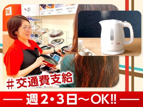 仕事内容 \オススメ求人/ CMでも有名なティファールストアのスタッフを大募集! ◆未経験OK! ◆土日だけ・短時間勤務・週2~OK◎ ◆急募*即日スタート! ◆20代・30代・40代・50代の女性が活躍中! ◆希望シフトご相談ください◎ くずはモール内のティファールストアで、 「取っ手の取れるフライパン」や「あっ、という間にすぐに沸くケトル」といった キッチン雑貨や調理家電などをご案内するお仕事です。 レジや売場のディスプレイ作りなどもお任せします。 ◆給与 ・時給1100~1300円 ※経験・能力を考慮して決定します。 ・交通費全額支給 ・最大月収21万以上稼げる! (月収214,500円=時給1300円×7.5h×22日勤務) ◆勤務日/時間 ・週2~5日勤務 ※土日勤務できる方優遇! ・9:00~21:30の間で実働5~7.5時間(休憩60~90分) シフト例 ・実働7.5h 休憩90分 9:00~18:00/9:30~18:30 11:00~20:00/12:30~21:30 ・実働7h 休憩60分 9:00~17:00/9:30~17:30 12:30~20:30 ・実働6.5h 休憩60分 14:00~21:30 ・実働6h 休憩60分 9:00~16:00/9:30~16:30 ・実働5.5h 休憩60分 14:00~20:30 ※家庭と仕事を両立されている主婦(夫)の方も多数活躍中です! ※授業のない日に働きたい学生さんも歓迎♪ 短時間もOK!希望シフトご相談ください◎ ◆勤務地 くずはモール内のティファールストア アクセス:樟葉駅より徒歩5分! ※各駅からバスあり *車・バイク・自転車通勤OK* 勤務先は大型ショッピングモール内の店舗なので、 出勤前やお仕事帰りにショッピングが楽しめちゃう♪ さらに、従業員割引があるのでお得にお買い物ができます(*^^*) ◆1日の流れ ※スケジュールは一例です。 【9:00~】開店準備 ・掃除 ・納品作業 ・レジ立ち上げ など 【10:00~20:00】 接客メイン! 空いた時間で ・納品物の整理 ・売り場レイアウトの変更 ・ゴミ捨て もお願いします 【20:00~20:30】閉店作業 ・売上集計 ・日報作成 ・POPの差し替え ・引継ぎ事項記載 など ◆職場の雰囲気 料理やオシャレなキッチングッズ好きの方が多く、みんなで仲良く和気あいあいとした雰囲気です(*^^*) 仕事で得た商品知識やノウハウが日頃の家事にも活かせるので、毎日の生活が楽しくなること間違いなし! ◆こんな方は大歓迎! ・キッチン雑貨や調理家電が好きな方 ・土日勤務出来る方 ・遅番勤務できる方 ・販売経験や接客経験のある方も、大歓迎♪ ◆未経験OK◎充実の研修とフォロー体制があるから安心! 座学研修後、実際の店舗でのOJTを予定しています。 商品知識などしっかり学べるため、安心してスタートできます(*^^*) ◆待遇・福利厚生 ・交通費全額支給 ・各種社会保険完備 ・商品の無料貸し出しあり ・綺麗な休憩室あり ・従業員特典あり ・産休・育休制度あり ・有給休暇 ・車・バイク・自転車通勤OK ・ユニフォーム(ワイシャツ・エプロン)貸与 など! -:*:-☆-:*:-☆-*:-:*:-☆- 「毎日の生活を楽しくする」というティファールのブランドテーマに基づき、 お客さまの生活を楽しくより豊かになるようご提案して下さい。 事前研修で商品知識がしっかり学べるため、安心してスタートできます。 アパレルなどの販売を経て勤務している先輩も多く、 やさしいスタッフばかりなので、困ったときも相談しやすい職場環境です。 身につけた商品知識と接客スキルで、やりがいや達成感を体感しませんか? -:*:-☆-:*:-☆-*:-:*:-☆-" 雇用について (雇用元:株式会社バックスグループ) 掲載:株式会社バックスグループ 営業企画部 株式会社バックスグループは博報堂グループの一員です。