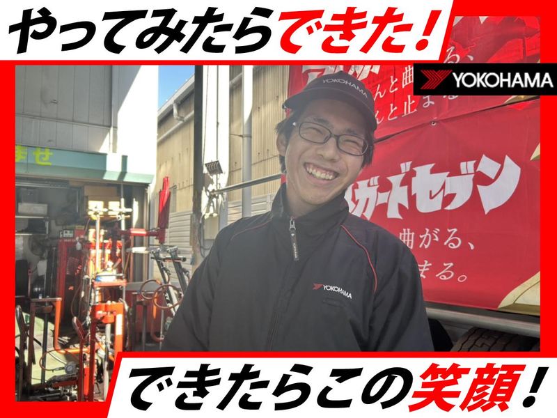 仕事内容 トラックやバス、乗用車などの大型車をメインに、法人のお客様から依頼されたタイヤの整備・交換をお任せします。 <具体的には> ・お客様のお出迎え ・作業内容・工程の確認 ・タイヤ交換(1日5~10件程) ・お引き渡し&お見送り ・簡単な事務作業 \まずやってみる!の意欲が大切/ ‾‾‾V‾‾‾‾‾‾‾‾‾‾‾‾‾‾‾‾‾‾‾‾‾‾‾‾‾‾‾‾ 「やったことないからできない」って考えるより、「やったことないからできるようになってみたい」と行動に移せる方にぜひ来てもらいたいと考えています。 なぜなら、未経験からスタートする方の中に、タイヤの整備や交換をしたことがある方ってほとんどいないから。 初めてのことが多い仕事だからこそ、意欲的に取り組んでくれる方を大歓迎します。 \教えてくれる先輩がすぐそばにいる/ ‾‾‾V‾‾‾‾‾‾‾‾‾‾‾‾‾‾‾‾‾‾‾‾‾‾‾‾‾‾‾‾‾‾‾‾ 車業界ので勤務経験ゼロでOK!当社では他業界から転職してきた先輩スタッフが多数活躍しています。急成長中の2年目社員は工場勤務からこちらに転職してきました。 経験不問な理由は、社内にしっかりとしたマニュアルがあること。そして、先輩がすぐそばにいて、常に仕事を教えてくれる環境があるから。 気兼ねなく相談できる雰囲気の中で働けるので、聞きやすいのが当社の魅力です。教わりながら技術を身につけられるので成長を続けられます。 \1台1台に達成感がある/ ‾‾‾V‾‾‾‾‾‾‾‾‾‾‾‾‾‾‾‾‾‾‾‾ 大きな車のタイヤ交換になるので、力を使う場面も多々あります。そうした中でタイヤを新品のものに交換し、作業を終えた時の達成感はとっても大きい。 1台1台に達成感を得られる機会があるから、台数を多く担当した時には疲れはするけど、それ以上の充実した気持ちで仕事を終えられる環境があります。 \ヨコハマタイヤの魅力にハマる/ ‾‾‾V‾‾‾‾‾‾‾‾‾‾‾‾‾‾‾‾‾‾‾‾‾‾‾‾‾‾‾‾ 車を乗っている人なら必ずと言っていいほど目にしたことがある「ヨコハマタイヤ」のグループ会社なので、タイヤを安く購入できるのが嬉しいポイントです。 そして、仕事を終えた後にタイヤ交換を自社で行えるので工賃などはかからないのも特典の一つです。 さらに、母体が大きいので仕事は今後もずっとある。経営基盤がしっかりしているので将来性があります。こうした環境の良さに魅力を感じているスタッフが多数活躍中です。