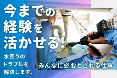 求めている人材 【 必須 】 ■水道のメンテナンス・修理に関する 実務経験者が採用対象です ■高卒以上の方 ■要普通自動車運転免許 <優遇・歓迎条件> ・設備工事等経験5年以上ある方 ・管工事の経験優遇 ・中型免許保有者歓迎 ・車両系建設機械運転技能者歓迎 <こんな方にオススメです> 「資格を活かして働きたい」 「正社員で安定した生活がしたい」 「手に職をつけて働きたい」 「長く働ける会社で活躍したい」 など 【 活かせる経験を詳しくご紹介 】 正社員・アルバイト・パート・派遣など 雇用形態は問わず、配管工事や施工工事、 大工・とび職人、建設土木業界、防止、 重機オペレーター、解体作業、 造園工事、足場工、解体業者、 水回りのメンテナンスの経験を活かせます。 先輩が基礎からサポートするので 安心してスタートできますよ。 職歴関係なく、風通しのいい関係性の 職場なので、あなたもスグに職場に 馴染んでいただけると思います! 先輩スタッフがしっかりと サポートするので、 安心して飛び込んできてください!