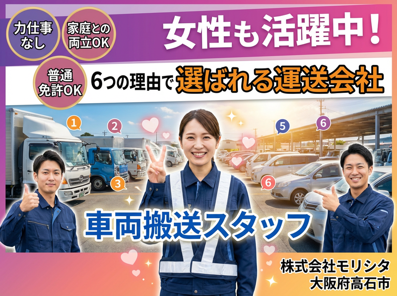 仕事内容 株式会社モリシタ 「リアルな現場の声」 ~多様な社員が語る、 それぞれの働き方スタイル~ 【入社2年目・田中翔太さん(27歳)】 車好きから始まった「とある1日」 朝6:30 高石市の1Kアパートにて 目覚ましより早く目が覚める。 今日運ぶ車のことを考えながら コーヒーを淹れる。 「今日はどんな車に会えるかな」って、 まるで新しい友達に会いに行くような気持ち。 天気予報をチェックして、 雨なら特に慎重運転を心がける 準備をする。 7:45 出社・同僚との何気ない会話 事務所に着くと、先輩の佐藤さんが 既に車両点検をしている。 「田中くん、今日は外車多いで〜、 気ぃ引き締めていこな」 なんて声をかけてもらう。 この軽い雑談が、 一日の緊張をほぐしてくれる。 9:00 BMW X5との出会い 今日最初の車両は高級外車BMW X5。 正直、2年経った今も緊張する。 それは怖いんじゃなくて、 「この車を大切に運びたい」という 責任感からくる緊張。 エンジンをかけた時の音、 シートに座った時の感触、すべてが学び。 普通に生活していたら 絶対に運転できない車に乗れるって、 本当にラッキーだと思う。 12:00 昼食・同僚との車談義 近くの定食屋で先輩と昼食。 「今日はどんな車だった?」が 定番の会話。 佐藤さんは「昨日、初代NSX運んだんや! もう興奮して夜眠れへんかった」 なんて話してくれる。 車好き同士だから、 仕事の話が趣味の話にもなる。 14:00 午後は軽自動車・違いを楽しむ 午後は軽自動車の搬送。 BMW X5から軽自動車に乗り換えると、 「こんなに違うのか!」って毎回驚く。 車種によって運転感覚が全然違うのが 面白くて、「今度はどんな車かな?」って 期待感が止まらない。 17:30 帰宅・ゲームでリフレッシュ 家に帰ったらPS5でレーシングゲーム。 仕事で実際に運転した車が ゲームに出てくると、 「あ、この車知ってる! 実際はもっと重量感があるんだよな」 なんて思いながらプレイ。 リアルとゲームの違いを楽しめるのも、 この仕事ならでは。 田中さんのスタイル: 「車との出会いを大切にする、成長実感型」 【入社5年目・佐藤美香さん(34歳)】 女性ドライバーが見つけた 「安定とやりがいのバランス」 朝7:00 3歳の娘と朝の時間 「ママ、お仕事がんばって!」 娘の元気な声で一日がスタート。 以前のコールセンターの仕事は 夜遅くまでだったけど、 モリシタは17時には帰れるから、 娘との時間が確実に取れる。 これが一番の決め手だった。 8:00 出社・チームでのコミュニケーション 「美香さん、今日は軽めの車両中心やから 安心して」と森下社長が声をかけてくれる。 男性ばかりの職場だけど、 変な気を遣われることもなく、 一人のドライバーとして接してもらえる。 9:30 プリウスで初搬送・丁寧さが武器 今日最初はプリウス。 私の強みは「丁寧さ」だと思っている。 男性陣のようにパワフルな運転は できないけど、細かい部分への気配りは 負けない自信がある。 車内の清掃チェック、 外装の小さな傷の確認、 お客様への丁寧な対応。 11:00 お客様とのやり取り 搬送先で「女性のドライバーさんは 珍しいですね」と言われることもある。 でも、車両の状態説明や 書類の受け渡しでは、 「丁寧で安心できる」と 評価してもらえることが多い。 これは前職の接客経験が 活かされていると思う。 12:30 昼食・ワークライフバランスの実感 「今日は保育園のお迎えがあるから、 定時で帰らせてもらいます」と伝える。 「もちろん!子どもが一番やからな」と 言ってもらえる環境。 前の職場では言い出しにくかった こういうことが、自然に言える。 18:00 保育園お迎え・娘との時間 「ママ、今日はどんなお車だった?」 娘の質問が可愛い。 「今日は白いプリウスと、 黄色い軽自動車だったよ」と答えると、 「次は何色かな?」と目を輝かせる。 仕事の話が家族の会話になる、温かい日常。 佐藤さんのスタイル: 「丁寧さと家庭の両立を重視する、 バランス調整型」 【入社10年目・山田健一さん(42歳)】 ベテランが語る 「この仕事の本当の面白さ」 朝6:00 経験者ならではの準備 10年の経験で身についた朝のルーティン。 天気、道路状況、搬送車両の事前チェック。 「今日は雨やから、ブレーキの効きを 特に意識しよう」など、 その日に合わせた運転方針を 頭の中で整理する。 8:15 後輩指導・知識の共有 新人の鈴木くんと一緒に出発準備。 「この車、ブレーキが敏感やから 最初はゆっくり踏んでみ」とアドバイス。 10年間で蓄積した車種ごとの特徴を 後輩に伝えるのも大切な仕事。 教えることで、自分の知識も整理される。 10:00 レクサス搬送・プロとしてのプライド 今日はレクサスLS。 高級車になればなるほど、責任も大きくなる。 でも、それがプロとしての やりがいでもある。 「10年前は緊張で汗だくだったけど、 今は車との対話を楽しめる」 そんな心境の変化を感じる。 12:00 昼食・業界話と人生相談 「山田さん、実は転職考えてるんです...」 後輩から相談を受ける。 10年いると、いろ