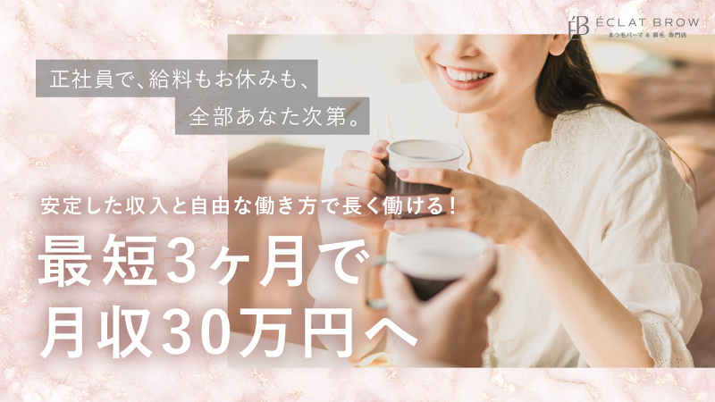 【土日も希望休100%】2026年3月NEW OPEN!未経験OKの完全個室&マツエクなしアイラッシュサロンでオープニングスタッフを募集!オープニングだからあなたの意見も反映しやすい環境です☆