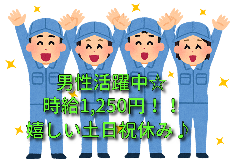 昇給あり/土日祝休み/正社員登用あり/嬉しい日勤のみ/20~40代男性活躍中/未経験可能/ブランク可能