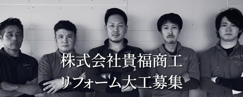 選考プロセス 応募フォームからお気軽にエントリーしてください! 面接では「どんな働き方がしたいか」をざっくばらんに話しましょう。 電話応募も歓迎!「求人を見た」とお伝えください。 会社について 株式会社貴福商工は、内装リフォームを中心に急成長中の会社です。 2022年からは不動産事業もスタートし、自社で中古物件を買い取り、リノベーションして再販する事業も展開。 成長企業で、将来性も抜群!2026年末には工務店事業部も建て替えリニューアル工事中なので綺麗で広い新しい事務所も完備です🌟