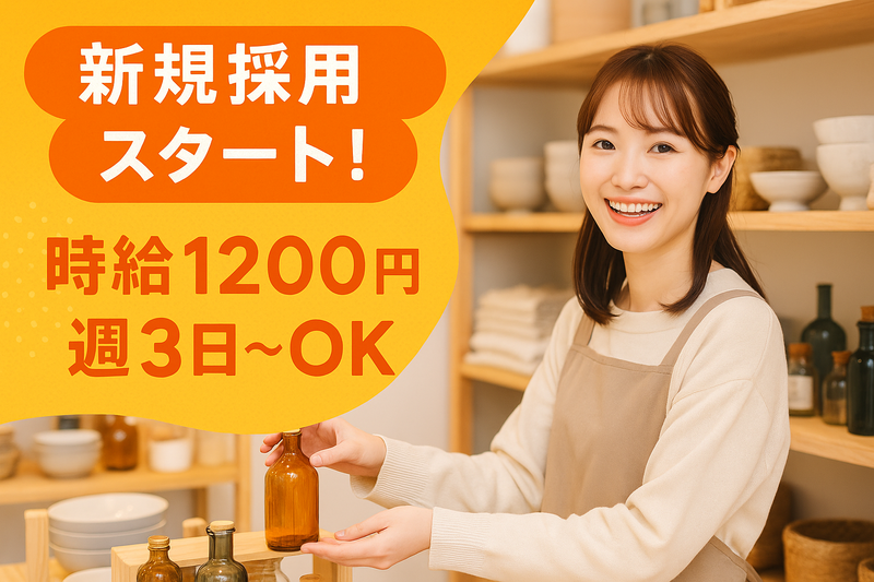 求めている人材 ✅ 人と接するのが好きな方 お客様とのちょっとした会話や笑顔の対応が大切なお仕事です。 「ありがとう」と言われる瞬間がやりがいに感じられる方にピッタリ! ✅ 雑貨やインテリアが好きな方 可愛い日用品やこだわりの食品など、 自分が「いいな」と思える商品を扱う楽しさがあります。 おしゃれな空間で働きたい方にもおすすめ。 ✅ コツコツ丁寧に作業できる方 商品をきれいに並べたり、ラッピングしたりと、 細かい作業が多いので丁寧に進められる方に向いています。 ✅ 柔軟な働き方をしたい方 週3日~OKだから、家庭・学校・副業と両立したい方にも◎