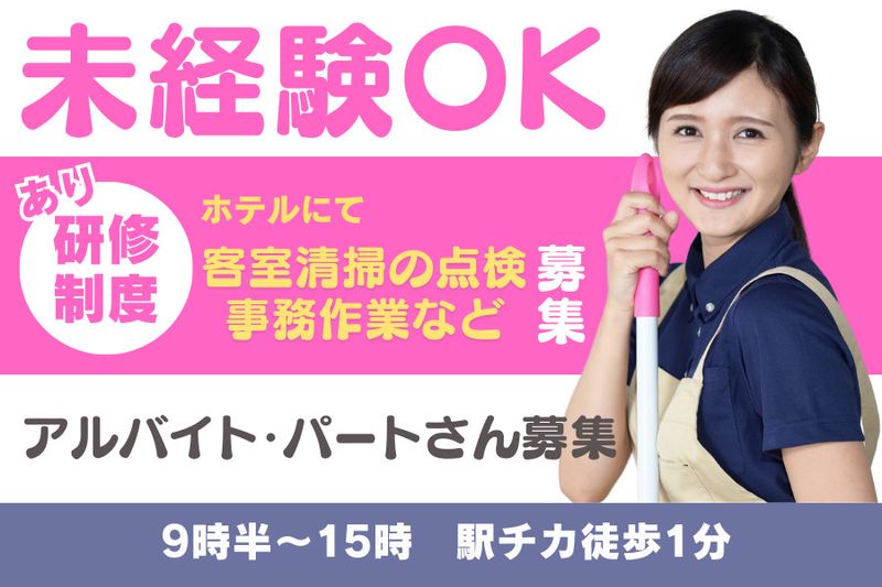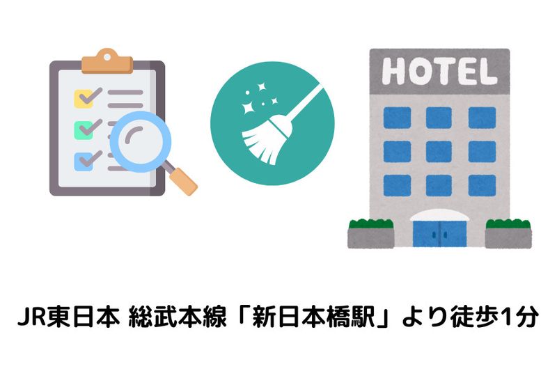 【仕事内容】 \JR「新日本橋駅」より徒歩1分/ ✨未経験者に特におすすめ✨ ホテル客室清掃の インスペクター・チェッカーを募集! 客室清掃の不備がないか 最終チェックを行っていただきます。 チェック業務なので身体の負担が少なく、未経験者の方に特におすすめです! 【具体的には】 ・ルームメイク後の手直しや仕上げ ・現場責任者のフォロー対応 ・清掃スタッフへ指示出し ・簡単な事務業務 その他に付随する 業務もお願いします。 まずは一週間ほど清掃の仕事の流れを学んでいただき、その後に点検業務をお願いします。 わからないことがあっても 先輩スタッフがフォローします! ✅留学生活躍中 中国、ベトナム、フィリピン、 スリランカからの留学生が活躍中の現場です♪ マニュアル整備も進めており、 働きやすい環境整備に取り組んでおります! 少しでも興味がございましたら ご応募、ご連絡下さい。 お待ちしております。 【求人ID-A0020-1】