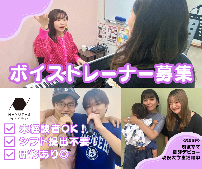 求めている人材 《こんな方歓迎》 ・好きな歌を人に伝えたい方 ・常に成長する意欲のある方 ・講師経験のある方 ・自分の可能性を伸ばしたい方 ※指導に関する知識、向上心、講師適正から総合的に判断