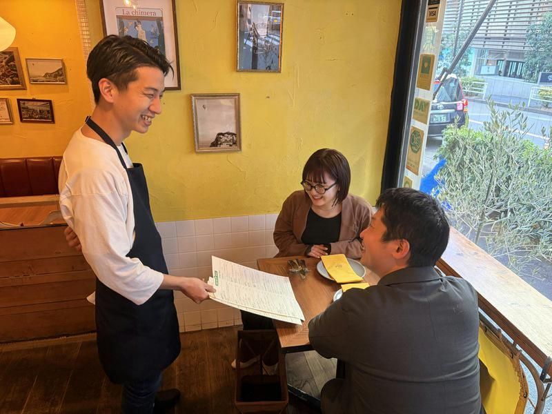 選考プロセス 数ある求人広告の中から 当店の求人情報を最後まで ご覧いただきありがとうございます。 少しでも興味がありましたら 是非ご応募ください! ✅WEB応募 <24時間受付中> 応募確認後、メールにて 面接についてのご案内をいたします。 ✅電話応募 <受付時間14:00~17:00> 求人を見ました! とお気軽にお電話ください! ※面接~採用まで最短3日! 服装は普段着でOK!お仕事の説明を含め、30分程度を予定しています。 【面接時は履歴書不要】 当日面接もご相談ください 面接シートを店舗でご記入頂いた上で、 記入頂いた内容を元に面接を進めて参ります!皆さんにお会いできることを楽しみにしてます。 皆さんにお会いできることを楽しみにしてます。 ⭐採用担当からのメッセージ⭐ バイト選びで「どうせなら、おしゃれな街で働きたい」と思ったことはありませんか? でも、それだけじゃ物足りない。せっかくなら、自分が本当に成長できる場所がいい。 株式会社テイクファイブが運営するレストランでは、 料理・ドリンクの知識はもちろん、 コミュニケーション力、気配り、おもてなしの心など "社会に出てから一生使える力"が自然と身につきます。 一品一品が主役級に美味しい料理をキッチンが作り料理のこだわりと楽しみ方をホールが伝える。 食事をしにきて頂いたお客様にお店の空間全部を楽しんで頂ける様にスタッフ全員で連携しています。 ✅シェフの絶品まかない無料 ✅グループ店舗で使える従業員割引20% ✅インセンティブ制度 (最高で毎月5000円の社内お食事券)など嬉しい待遇もしっかり整っています。 テイクファイブの理念は「レストランを通して沢山の人を幸せに」。 東京の一流エリアで、一流のおもてなしを。 そのバイト経験が、あなたの人生の財産になる。 成長したい! 誰かに喜ばせられる自分になりたい! という気持ちがあれば大丈夫。 そんな方にオススメのバイト先です♪ ⭐近隣の学生の皆さま、 どうぞご応募ください!⭐ ・東海大学(渋谷キャンパス) ・帝京短期大学 ・東京大学大学院 ・ドルトンスクール東京 ・専門学校東洋公衆衛生学院 ・渋谷ファッション&アート専門学校