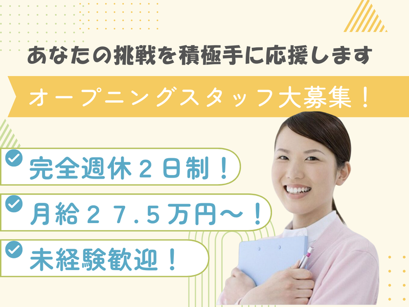 【オープニングスタッフ】未経験OK!夜勤ナシ!ブランクOK!