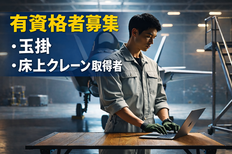 求める人材: ・製造業の仕事に興味がある方 ・航空機関連の仕事に関わりたい方 ・コツコツと作業を進める仕事が好きな方 ・安定した工場勤務を希望している方 玉掛け・クレーン資格をお持ちの方は業務経験を活かせます。