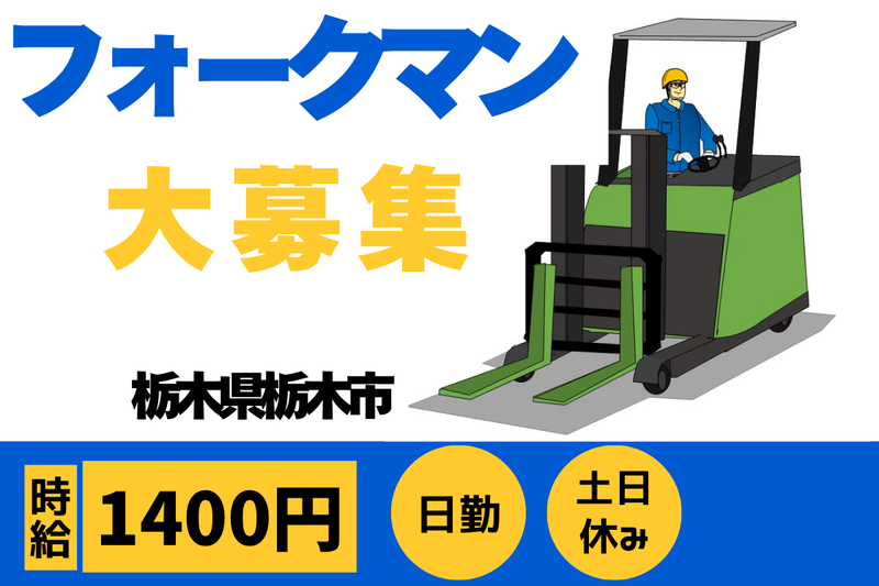 仕事内容 《 ここがポイント! 》 ★日勤専属×土日休みの安定勤務! ★フォークリフト資格を活かせる職場 ★月収27万円以上可/高時給1400円! ★大手自動車メーカー工場内で長期安定 ★正社員登用制度あり 《 主な業務 》 自動車部品の運搬をお任せします。 フォークリフトを使用して、 倉庫から生産ラインまで部品を運搬する作業です。 【具体的には】 ・フォークリフトで部品をピッキング ・製造ラインへの部品供給 ・入出庫作業、棚入れ、整理整頓 ・伝票確認などの付随作業 ※カウンター・リーチ両方の経験を活かせます。 ※運搬エリアは屋内中心で、天候に左右されません。 《 職場環境 》 ・無料駐車場あり ・休憩室、ロッカーあり ・安全教育、操作講習あり(ブランク可) 《 PRポイント 》 資格を活かして安定収入を得られる環境です。 残業手当・公出手当も支給され、 日勤でもしっかり稼げます。