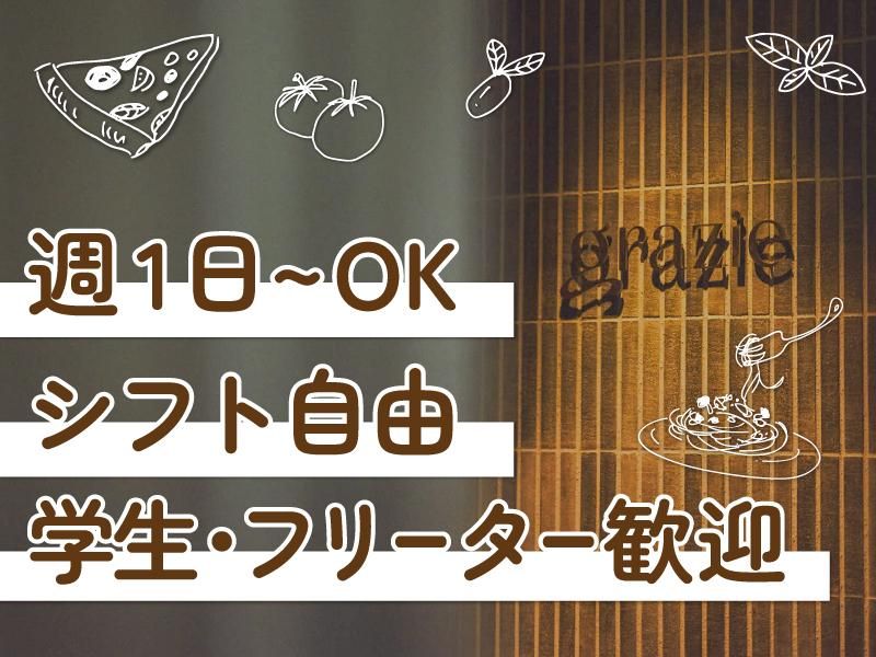 仕事内容 / SNSやTVで話題を集めるオシャレなイタリアン酒場! 東京で初OPENした渋谷駅スグの駅チカ人気店です✨ \ グラッツェ=「ありがとう」。 『ありがとう』の気持ちで溢れた オシャレダイニング「グラッツェ」で、 キッチン(調理補助)のお仕事をお任せします! 8月のOPEN以来、早くもメディアで話題を集め、 Google口コミはありがたいことに2025年12月時点で 552件(星4.8)の評価をいただいています✨ そんな人気のイタリアン酒場のスタッフとして、 素敵な料理と幸せの時間をお客様にお届けしましょう! 【具体的なお仕事は】 最初は簡単な盛り付けや下準備、 お皿洗いなど簡単なお仕事から 少しずつお任せしていきます! 慣れてきたら実際の調理もお任せします。 パスタや窯焼きピザ、肉料理など 手作りにこだわっているお店なので、 本格イタリアンを作れるようになれるかも・・・! オープニング募集だから新しいことを始めるのにピッタリ! オープンしたばかりのグラッツェで、楽しくオシゴトしませんか? \グラッツェの「ココ」がイイ!!/ [1]バイトデビューにもオススメ! 学生・フリータースタッフが中心に活躍中! 未経験から始めた同年代のスタッフが多く、 グラッツェで早くも友達ができた人が多数* お仕事は簡単なことからお任せするので、 初バイトの方も安心です! [2]オシャレも楽しめる! 20代のスタッフが多いグラッツェでは、 オシャレを楽しんでいる人も多数! 髪色もピアスも自由です! 制服もカワイイ&オシャレだと大好評* バイトを始めるから黒染めをしなきゃ・・・ なんて心配もしなくても大丈夫ですよ。 (「清潔感」だけは大切にお願いします!) [3]シフト自由! 週1日~、1日3時間~シフト相談OK! 日数や曜日、時間帯なども希望をしっかり考慮しますので、 自分らしく働くことができるお店です。 学校や遊びの予定と両立がしやすく、 学生さんやフリーターさんなどにオススメです!