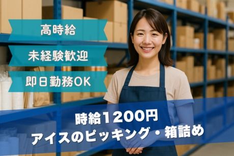 【最高時給1,500円~】未経験OK♪アイスやソフトクリームの簡単ピッキング・箱詰めスタッフ募集!