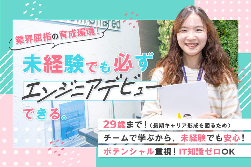29歳まで【期間限定!強化期間で採用率UP✨】残業月平均3.5h×年休127日✅3ヶ月研修でITデビュー✨