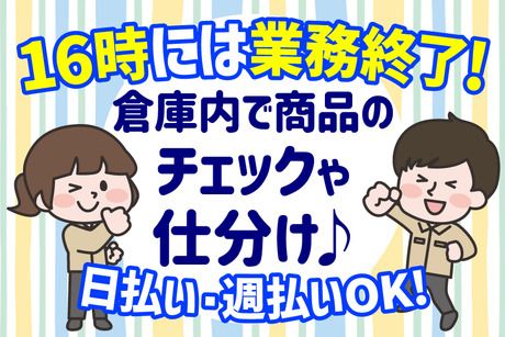 仕事内容 <男性スタッフ活躍中!常温倉庫内での軽作業> 商品のバーコードや状態を目視でチェック& チェック後の商品を指示に従って仕分けするシンプル作業☆ 複雑な作業なし!重い物の取り扱いは少なめ! 先輩スタッフが丁寧にサポートしてくれるから未経験でも安心!教育体制も◎ チームで協力しながら作業して頂きます♪