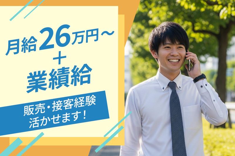 月給260,000円以上 給与詳細 基本給:月給 26万円 〜 固定残業代:なし 【一律手当】 全員に一律で支払われる通勤・皆勤・家族手当金額:なし 全員に一律で支払われるその他手当金額:なし 月給26万円+業績給 業績給は歩合給ではなく、 営業実績に応じて査定し毎月支給 └ 平均:月6万円程度 └ 最大:月10万円超の実績あり ✨さらに、報奨金制度もあり! 営業成績に応じて別途支給 (例:25万円の実績あり) ★交通費支給有り 【給与例】 給与例 【年収例】 ◆670万円~1000万円 ┗営業支店長(40代~50代) ◆500万円~550万円 ┗営業課長(30代~40代) ◆360万円~450万円 ┗営業主任(20代~40代)