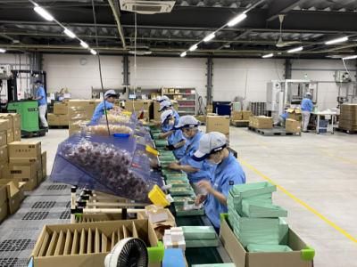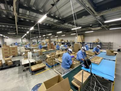 菓子の物流センターでの出荷作業