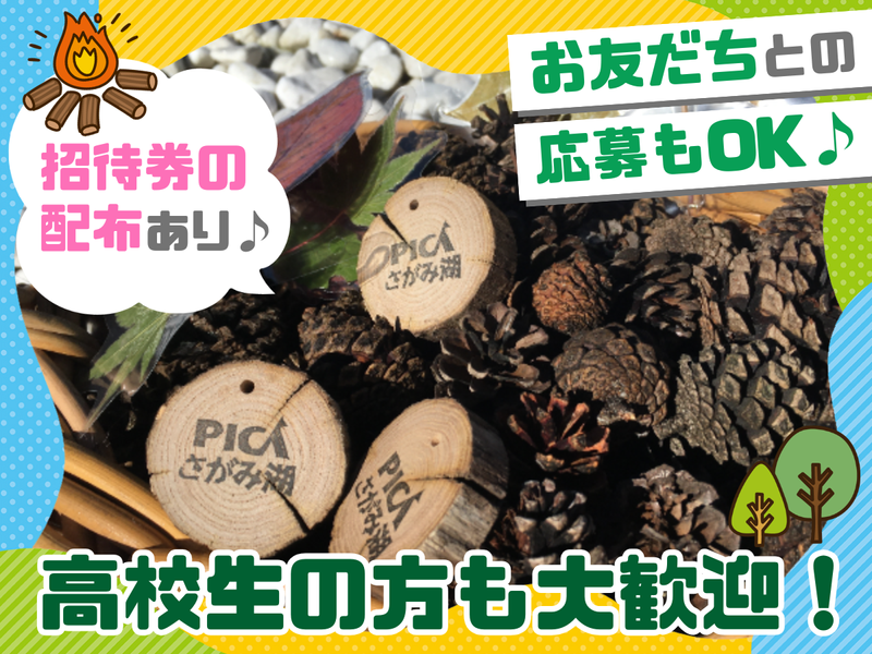 仕事内容 ┏━━━━━━━━━━━━━━━━━┓ ⭐キャンプ場運営スタッフ⭐ ┗━━━━━━━━━━━━━━━━━┛ 【おすすめポイント】 ✅未経験OK!もちろんキャンプ好きも! ✅招待券配布あり◎ ✅車・バイク・自転車通勤可(駐車場有) ✅友達との応募もOK♪ ✅高校生の方も大歓迎✨ ✅扶養内勤務可能!シフト融通◎ ✅週0日~もご相談ください♪ ▽▲▽▲▽▲▽▲▽▲▽▲▽▲▽▲▽▲▽▲ さがみ湖MORI MORI内にある キャンプ場の運営業務をお任せします! 知名度も高く充実した施設の老舗キャンプ場! PICAグループの施設でスタッフとして お客様が楽しく滞在できるサポートをお願いします。 <主な業務内容> ❒受付・清掃業務 ❒コテージ等の清掃 ❒バーベキュー場の準備・片付け など 慣れてきたら、シーズンごとのイベント企画や準備・実施、 施設やキャンプ用品のメンテナンスなど 施設運営にかかわる業務なども一から学べます! ▽▲▽▲▽▲▽▲▽▲▽▲▽▲▽▲▽▲▽▲ ✨未経験からスタートした先輩多数活躍中✨ アウトドアが好きだったという人もいれば 「ただ稼げそうだから・・・」 というきっかけで始めたスタッフも♪ どんな動機でもOKです! あなたらしく楽しく働いて下さい! ✨好きを仕事に✨ キャンプやアウトドアが好きな方は ご自身の経験などを業務に活かせます! 好きなことを仕事にして、 楽しく働きましょう♪ ✨シフトの融通がバツグン✨ 「子どもが急に体調が悪くなって…」 「再来週からテスト期間で…」 「今月末サークル合宿で…」 お子さん優先!学業優先!が叶う職場です◎ 週0日~もご相談ください! ▽▲▽▲▽▲▽▲▽▲▽▲▽▲▽▲▽▲▽▲