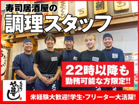 仕事内容 飲食業未経験もOK!初バイトでも安心の職場環境♪寿司居酒屋のキッチンスタッフ ☆∴..∴「いらっしゃいませ!」の元気な声が響く、活気あふれるや台ずし∴..∴☆ ここでは、美味しいお寿司と一緒に、最高の仲間と出会えるんです! ★未経験OK! 先輩が丁寧に教えるから安心スタート! ★18歳以上の方は学歴・経験不問!どなたでも大歓迎! ★学生・フリーター歓迎!短時間での副業やWワークもOK! ★まかない最高!店長の創作料理が食べられる! ★友達もできる! バイト仲間とワイワイ盛り上がろう! ★髪色・髪型自由で働ける!清潔感があれば派手髪・ネイル・ピアスもOK!(規定あり) ★動画マニュアル完備 ★録画面接も対応!24時間好きなタイミングで面接OK! 学校帰りや遊びのついでに、サクッと稼いで、美味しいものもゲットしちゃおう! 「ちょっと気になるかも…」って思ったら、気軽に応募ボタンをクリック! キミの笑顔と元気が、や台ずしをさらに盛り上げる!一緒に「旨い!」と「楽しい!」を作りましょう♪ 【シゴト】 寿司居酒屋「や台ずし」のキッチンのお仕事! …調理補助・盛り付けなど 。・゜☆・゜・ 。・゜☆・゜・ 。・゜☆・゜・ 。・゜☆・゜・ 。・゜☆。・゜