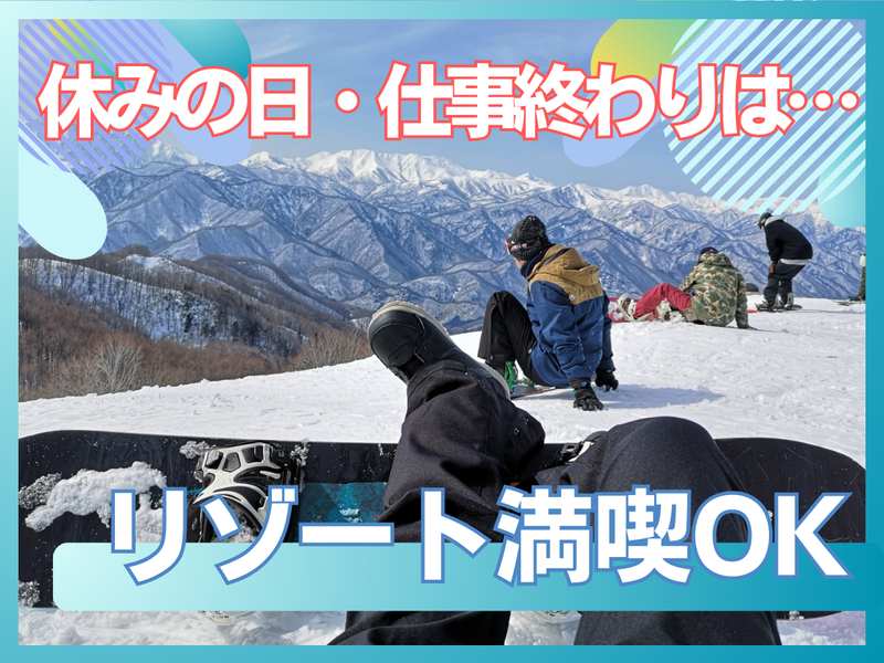 求めている人材 *学歴不問 *未経験・初心者OK *経験者・有資格者歓迎 *主婦・主夫歓迎 *フリーター歓迎 *副業・WワークOK *ミドル活躍中 *シニア応援 *ブランクOK ◆接客・飲食未経験OK! ◆リゾートバイト・ホテル勤務が 初めての方も歓迎します! ▼歓迎条件 ・明るい挨拶ができる方 ・丁寧な対応を心がけられる方 ・協力しながら業務に取り組める方 ・外国人観光客対応など、 英語に触れる環境で働いた経験がある方はぜひ! \こんな経験・スキルが活かせます/ ◎飲食店での接客・ホールスタッフ ◎ホテルレストランやビュッフェ形式の対応 ◎配膳・下膳、テーブルセッティング ◎観光地・リゾート地でのアルバイト \こんな方にオススメ!/ ✔未経験からチャレンジしたい ✔飲食・ホテルのお仕事に興味がある ✔短期集中でしっかり収入を得たい ✔明るい雰囲気の職場で楽しく働きたい ✔リゾートバイトに挑戦してみたい ✔冬のレジャーを満喫したい