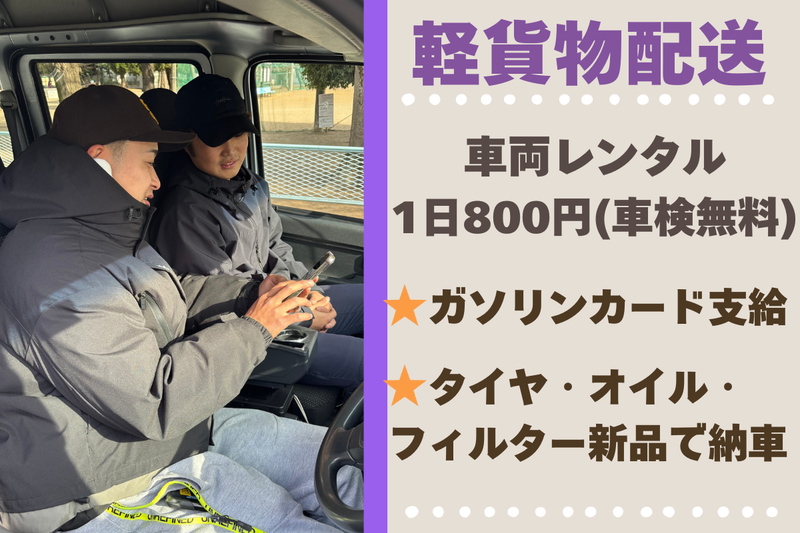 仕事内容 \\✨オープニングメンバー募集✨//  ̄ ̄ ̄ ̄V ̄ ̄ ̄ ̄ ̄ ̄ ̄ ̄ ̄ ̄ ̄ ̄ ̄ ̄ 設立間もない成長企業で スタートメンバーを大募集します! ポストも案件もこれから拡大。 “今入る人”が一番チャンスを掴めます。 ━━━━━━━ お仕事内容 ━━━━━━━ 軽自動車で、通販商品などの 軽貨物・小物類を配送するお仕事。 ▶ 配達エリア:埼玉県三郷市 ※他エリア相談OK ▶ 荷物は片手で持てるサイズ中心 ※体力負担は少なめ ▶ 普免でOK!軽自動車使用 ※車両レンタル制度あり 配送先での会話は少なめ! 黙々と配達に集中できます。 【✨幅広い世代が在籍】…………………… *月収50万円超を目指す20~30代 *効率よく稼ぐ主婦(夫)層 *とにかく稼ぎたいフリーター *まだまだ現役のミドル層 etc... 【✨将来独立も応援】……………………… 配送ノウハウを身につけながら 将来の独立も目指せます。 ただのドライバーで終わらない。 本気で上を目指せる環境です。 【✨スピード採用実施】…………………… ✅ 履歴書不要! ✅ 面接1回のみ!採用率90%超 ✅ オンライン面接も対応! ✅ 友達同士の応募も大歓迎 オープニングにつき、今なら採用枠多数! 本気で稼ぎたい方、是非ご応募ください。