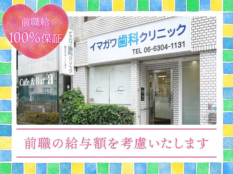 仕事内容 *いつもにこやかで優しい院長* *院内の雰囲気もバツグン* *穏やかな環境で働けます* ■歯石除去 ■薬物塗布 ■歯磨き指導 ■カウンセリング ■医師のサポート などの歯科衛生士業務をお任せします。 ☆嬉しいpoint☆ 【融通シフトで家庭や学校との両立◎】 シフトは週1日~、1日3時間~OK! ご都合に合わせて 無理なく続けていただけます☆ 午前診察だけ、午後診察だけ、などもOK* もちろん、午前、午後通しで フルタイム勤務できる方も大歓迎♪ 夕方17時~入れる方も歓迎☆ 曜日・時間はお気軽にご相談ください! 【担当制で患者様との信頼関係も◎】 業務に慣れてきたら、 患者様担当制も導入しています。 患者様との継続的なお付き合いをすることで お口の状態も把握しやすく、 患者様にとって的確なアドバイスができます。 信頼関係を築いて、感謝の言葉をいただけることが やりがいに繋がりますよ◎ 【実務経験不問!ブランクがあっても安心♪】 資格があれば、実務経験がなくてもOK! 院長はじめ、穏やかで優しいスタッフが 多数在籍していますので 分からないことがあっても、 気軽に質問すればみなさん快く応えてくれます☆ 久々のお仕事復帰でブランクがある方や 経験が浅い方も、 安心してスタートできますよ◎ <<当院について>> 淀川区西中島に根付いて約30年の イマガワ歯科クリニック。 むし歯治療、歯周病治療、小児歯科、 矯正歯科、小児矯正などの 診察を行っています。 院長の印象について、 「いつもにこやかで優しい院長」 スタッフは皆口を揃えて、そう言います。 忙しいときも穏やかで、 患者さまに対しても 丁寧に接している院長を見て、 「見習いたい」「自分も頑張らないと」 と口にするスタッフも多数! お手本が近くにいるからこそ職場の雰囲気がよく、 穏やかに働ける環境です。